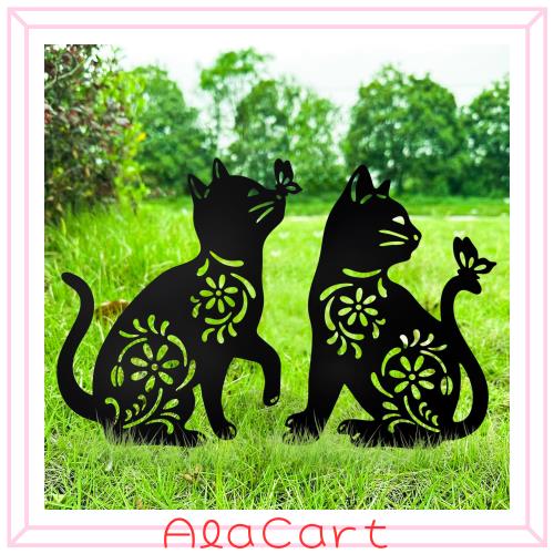 MrMrKura ガーデニング雑貨 猫 金属製 ガーデン 飾り プレート 猫 ガーデン置物 ガーデンオーナメント 透かし彫り 鉄製 屋外 ガーデンオ