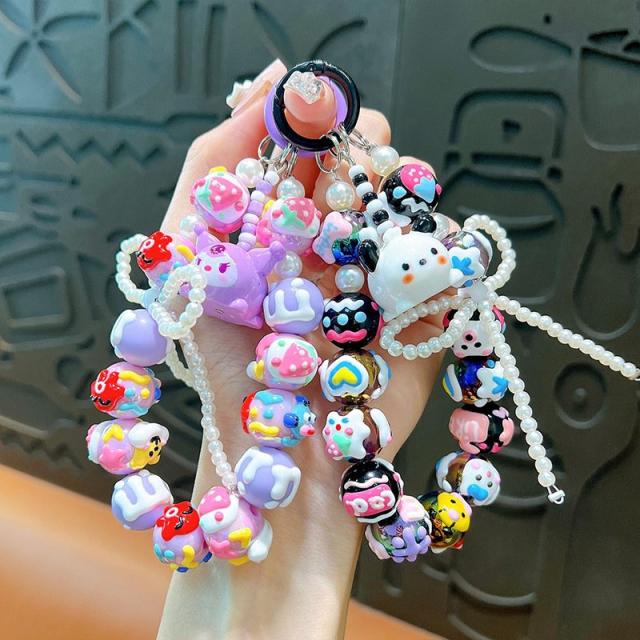 【かわいい装飾】 この実用的なハンドチェーンで人形にスタイルを追加し、アイテムをよりユニークにし、魅力的な人形の装飾を含むビーズのブレスレットキーチェーンを備えています。