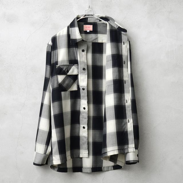 BIG MIKE ビッグマイク 102515201 レーヨン ミックス オンブレチェック L/S シャツ Type B【Cx】【T】|メンズ トップス 長袖 格子柄 大きいサイズ カジュアル 大人 黒 白 ブランド おしゃれ