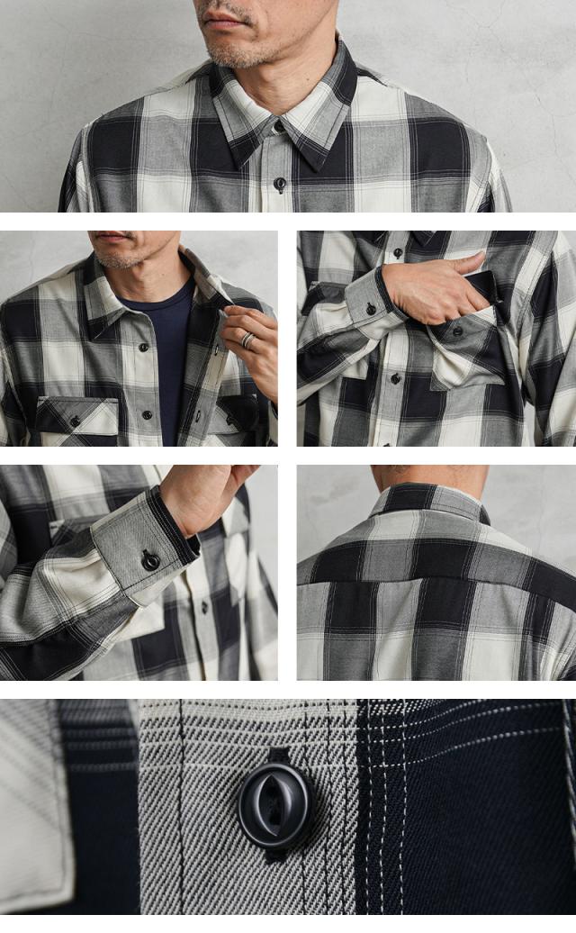 BIG MIKEから、着心地柔らかなレーヨンとポリエステル混紡のオンブレチェックシャツが登場しました。レーヨンとポリエステルを混紡した素材を使用。レーヨンの柔らかさと吸湿性にポリエステルの速乾性と耐久性の両素材を活かした仕様でサラッとした着心地の良さが特徴です。2本針巻き縫いやフラップ付き胸ポケットなどヴィンテージライクなディテールが魅力的に仕上がっており、また猫目ボタンを採用しているので、糸がくぼみのところにあり擦れるのを防いでくれます。サラッと清涼感のある一枚は通年を通して着用できる万能アイテム。