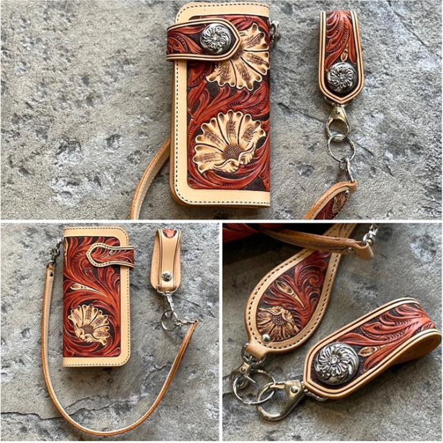 | 商品説明 | 【職人が丁寧に染め上げた逸品】 ・25年以上の経験を持つ職人の施したウォレットがケイシイズより新発売。 【KC.s(ケイシイズ)】 ・素材、染色、裁縫、部位全ての項目に拘った革製品ブランドKC.s(ケイシイズ)。 【手彫りで描かれた花模様】 ・表面の絵柄はすべてカービングよる手彫り作業で描き、職人の技術を詰め込んだアイテム。※1 【美しいコントラストに】 ・特殊繊毛を使った特殊な染料を用いた手染めは、美しいコントラストを実現。 【充実した収納】 ・10個のカードポケットや5つのフリーポケットを設け収納力抜群♪ 【U字にカットされたポケット】 ・ポケットの開口部はU字にカットされたデザインでカードや領収書もスムーズに取り出せる。 【ブランドオリジナル刻印】 ・Dカンとフラップ内部にはブランドロゴの刻印付き。細かい所までこだわりアリ◎ 【年代問わず使えるデザイン】 ・繊細で華やかな花の絵柄が女性らしいデザインに。派手すぎないカラーで大人女子さんにも◎ 【大きな存在感のある留め具】 ・留め具は大きな花デザインのスナップボタン。中央のビジューがキラッと輝くアクセント♪ 【雰囲気を壊さないベルト付属】 ・2本ベルトを付属。どちらもベルト全体にカービングを施し華やかな印象の仕上がりに。※2 【ギフトにもオススメ】 ・化粧箱のパッケージに入っているので、そのままギフトに贈るのもオススメ♪ 【ポケット仕様】 ・カードポケット×10、フリーポケット×5、お札入れ×1、小銭入れ×1 ・※1 カービングとは何種類もの専用工具を使い手彫りで柄を描く職人技術 ・※2 付属品・・・・ロングベルト×1 ・ ショートベルト×1 |