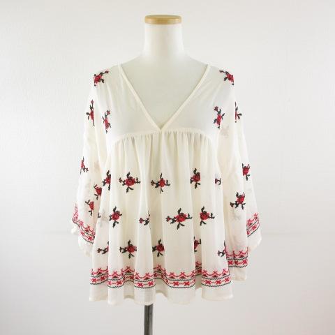 【中古】レイビームス Ray Beams ブラウス カットソー 七分袖 刺繍 ライトベージュ オフホワイト *T415 レディース