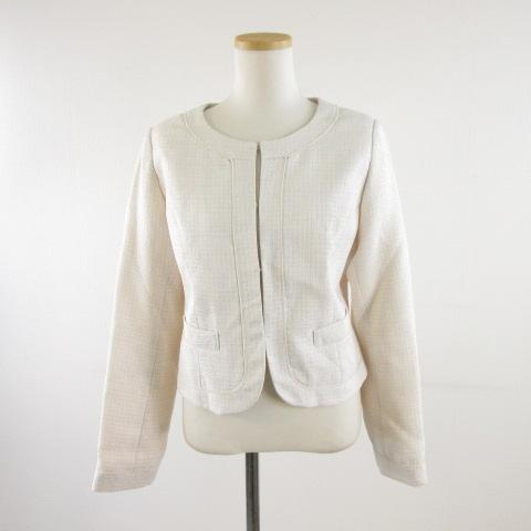 【中古】アーティクルアンコニュ ARTICLE inconnu ノーカラージャケット ツイード 長袖 オフホワイト ベージュ 11