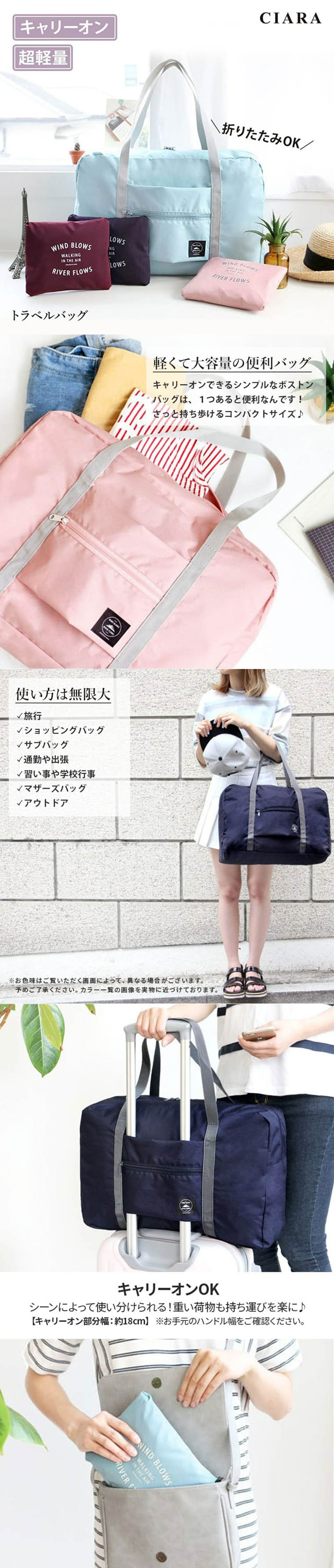 送料無料 旅行 通勤 通学に 折りたたみ可 キャリーオンボストンバッグ
