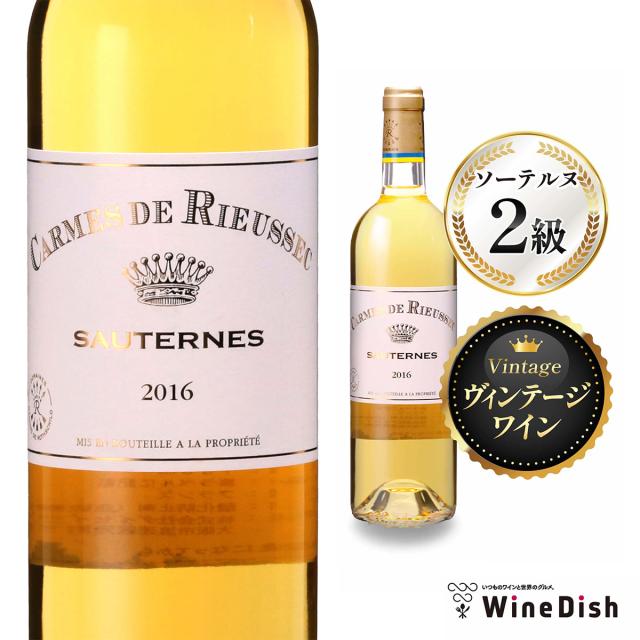【白】 カルム・ド・リューセック ソーテルヌ グランヴァンワイン 格付1級 セカンドワイン 750ml 白ワイン 極甘口 プレステージワイン Carmes de Rieussec 2016 Sauternes Grand Vin Wine ギフト お祝い プレゼント WineDish 年末お届け可能 冬ギフト 年末年始 クリスマス_dk