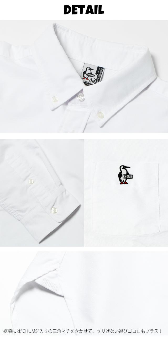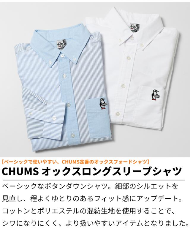チャムス シャツ 長袖 メンズ CHUMS CH02-1230 オックスフォードシャツ ロングスリーブシャツ カジュアルシャツ アメカジシャツ アウトドアシャツ 羽織り キャンプシャツ ワークシャツ 春 秋 冬 大きいサイズ ゆったり シンプル 定番 おしゃれ かっこいい コットンシャツ ポリエステル 綿 コットン ホワイトブルー ストライプ おすすめ 人気