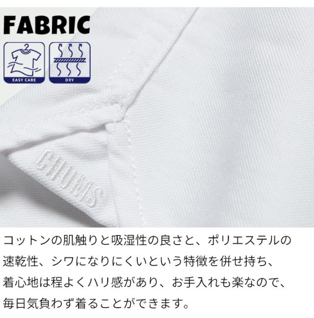 | コットンとポリエステルの混紡生地を使用。コットンの肌触りと吸湿性の良さと、ポリエステルの速乾性、シワになりにくいという特徴を併せ持ち、着心地は程よくハリ感があり、お手入れも楽なので、毎日気負わず着ることができます。 |