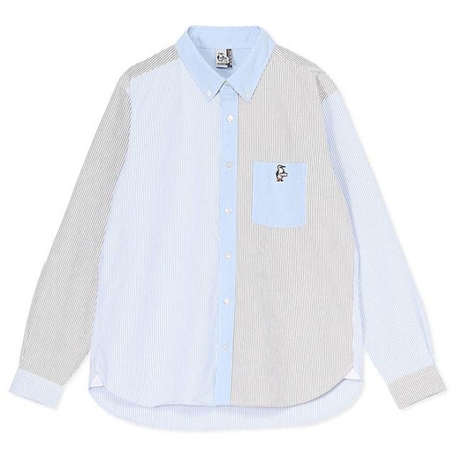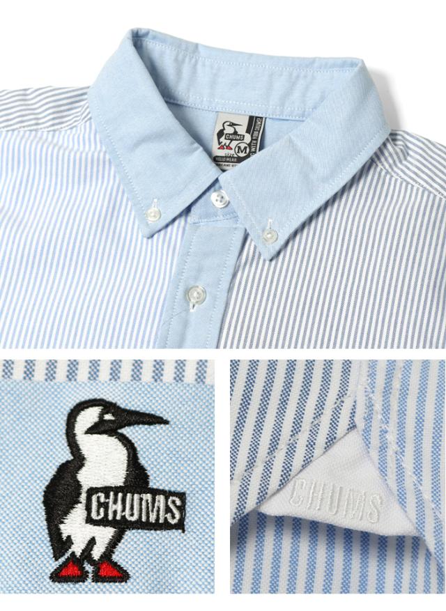 チャムス シャツ 長袖 ボタンダウン オックスフォード ロングスリーブ シャツ 白 ライトブルー ストライプ CH02-1230 オックスフォードシャツ CHUMS ワイシャツ 白シャツ カジュアル シンプル 春 秋 冬 ブランド ワンポイント