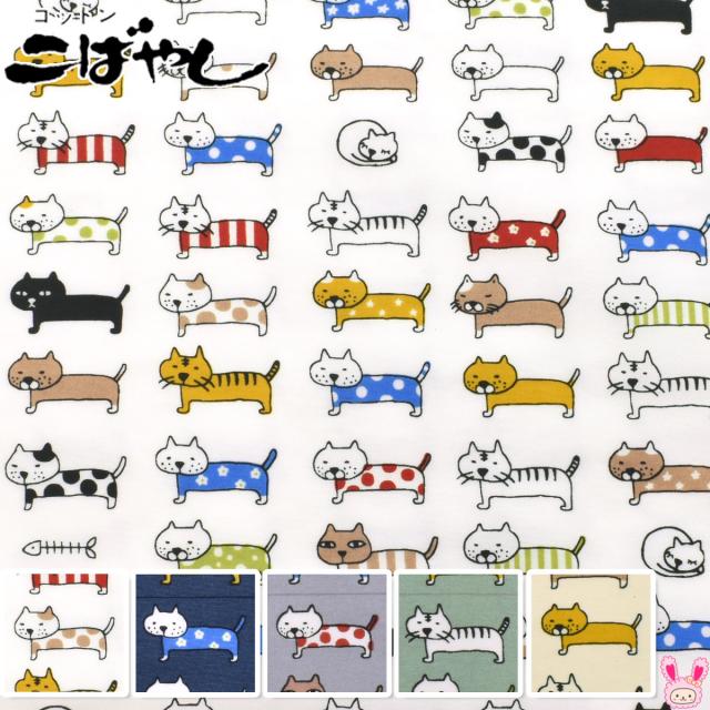 整列猫 ナイロンタスラン生地 KTS7084 コットンこばやし (50cm以上10cm単位切り売り)