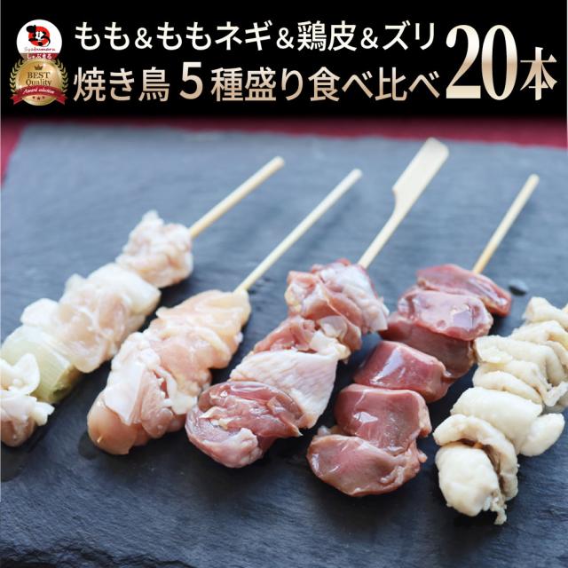 国産若鶏 親鶏 焼き鳥 串5種 食べ比べ 20本 (10本入り×2) もも ももネギ 鶏皮 ずり おつまみ 酒の肴 珍味 鶏 親鳥 若鳥 送料無料 国産 地鶏 おかず 惣菜 冷凍*当日発送対象 お肉の しゃぶまる