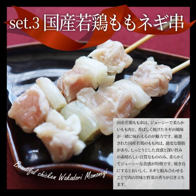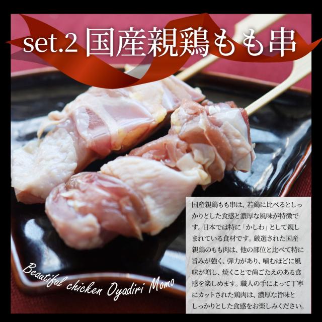 | 国産若鶏&親鶏 焼き鳥5種食べ比べ 60本はこちら> |