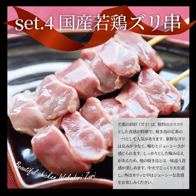 | 国産若鶏&親鶏 焼き鳥5種食べ比べ 40本はこちら> |