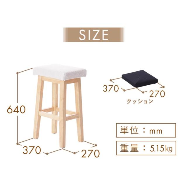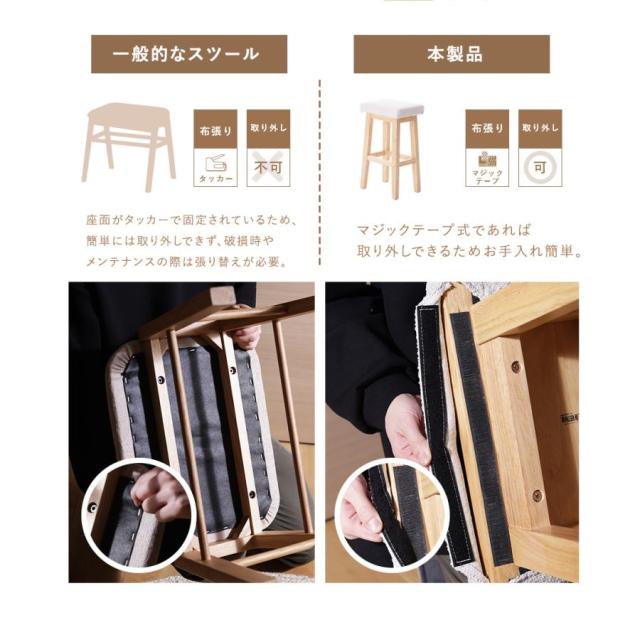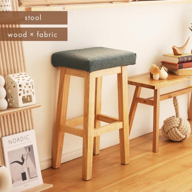 スツール 椅子 木製 カウンターチェア おしゃれ ハイスツール 木製スツール 北欧 天然木 チェア ハイチェア 高さ64cm シンプル 木製椅子 木 ファブリック