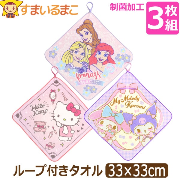 子供 こども キッズ ジュニア 女の子 女子 女児 タオル ループタオル ハンドタオル ループ付きタオル ループ付タオル 口拭きタオル 手拭き フェイス 紐付きタオル お名前が書ける 制菌加工 3枚組 3枚セット セット カラーパイル 綿100% コットン パイル地 新学期 入学 卒園 幼稚園 保育園 保育所 小学校 学校 吸水性 出産祝い プレゼント 贈り物 ギフト キャラクター キャラ Disney ディズニー プリンセス ディズニープリンセス ラプンツェル 塔の上のラプンツェル アリエル リトルマーメイド ベル 美女と野獣 Sanrio サンリオ ハローキティ キティ キティちゃん マイメロディ マイメロ クロミ マジックフラワー コスメティックピンク ドリーミーキュート ピンク パープル 桃 紫 マルチカラー かわいい 可愛い おしゃれ ポイント消化 まとめ買い 小学生 xbbz7
