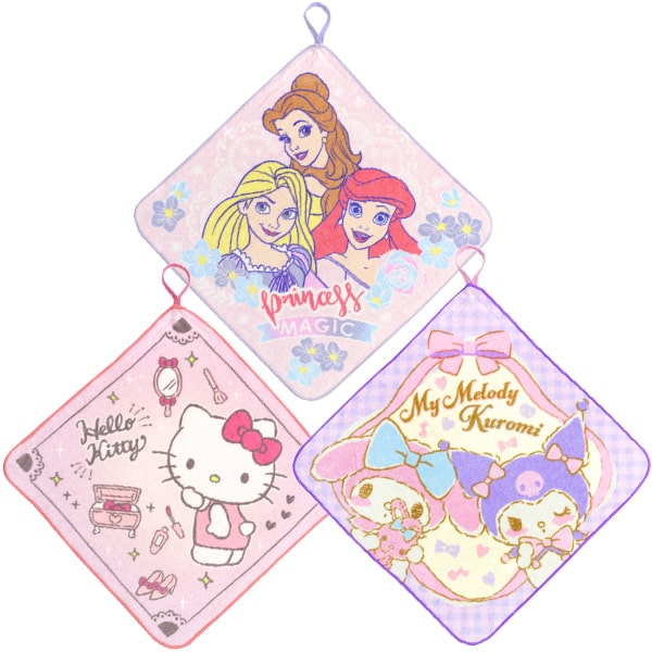 ループタオル ループ付き タオル お名前が書ける 3枚 セット 女の子 キャラクター キティちゃん マイメロ クロミ ラプンツェル アリエル ベル プリンセス set1022 メール便は送料無料 子供 こども キッズ ジュニア ハンドタオル ミニタオル 綿 コットン 新学期準備 qw503