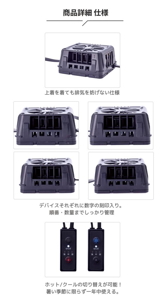 ・ペルチェデバイスは冷却時にファン部分から若干の排熱があります。デバイスの排熱を妨げるような着用はお避け下さい。