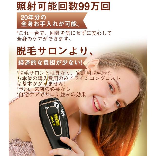 【使用回数99万回以上・5段階調整可能】約100万回の照射が可能、家族と一緒に使用でき、とても経済的です。