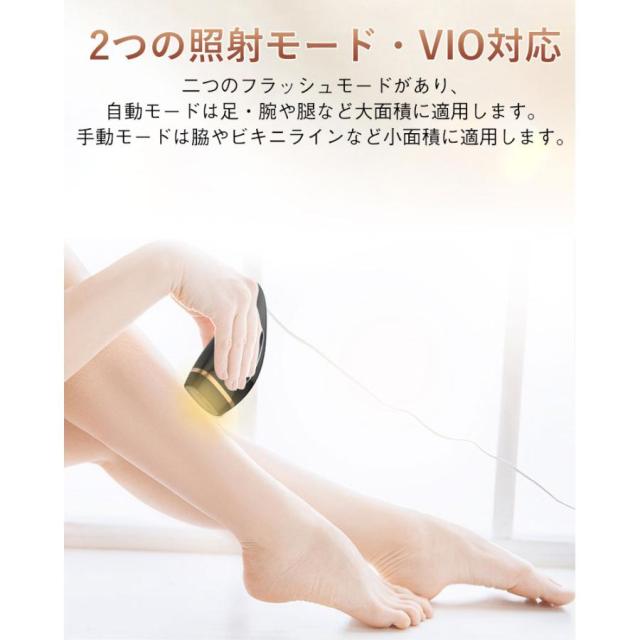 【2つの照射モード・VIO対応】二つのフラッシュモードがあり、自動モードは足・腕や腿など大面積に適用します。