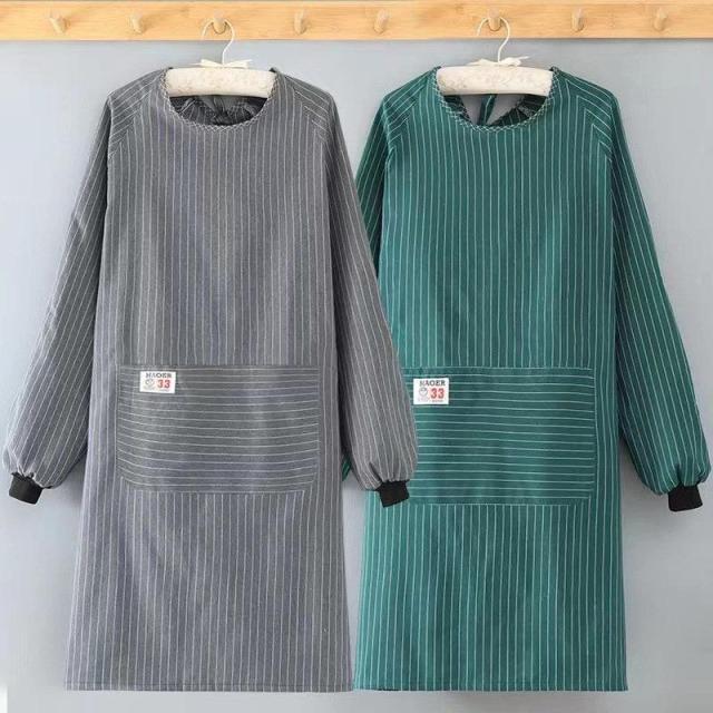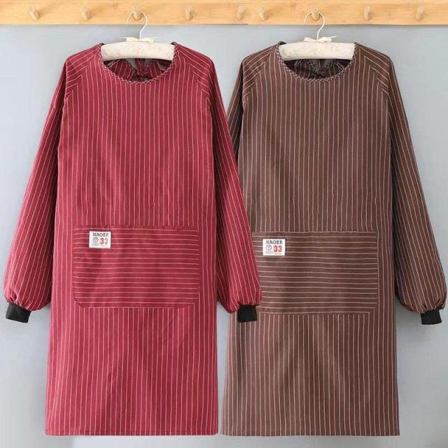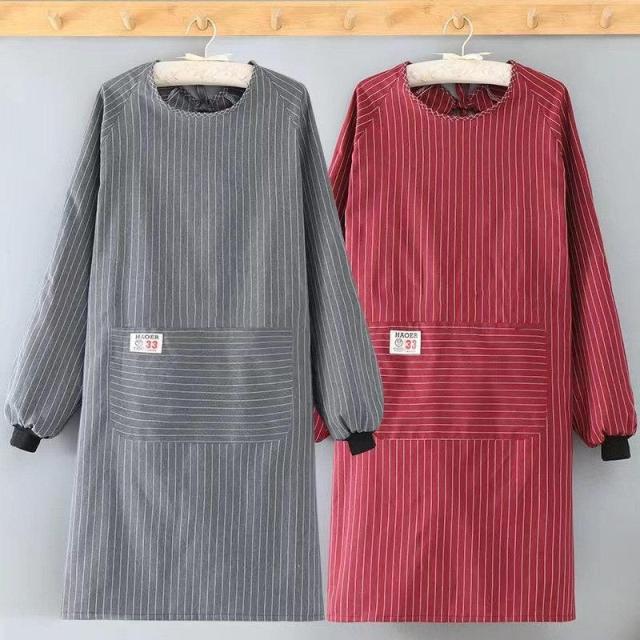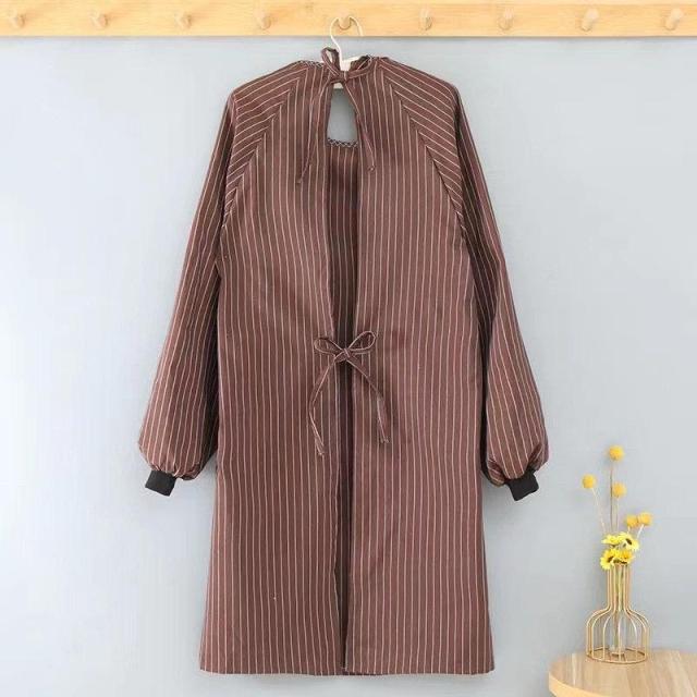 【キーワード】割烹着 おしゃれ 保育士 かわいい エプロン かっぽう着 前掛け エプロンコート キッチン雑貨 家事用品 スモック 大きいサイズ 料理 保育士 秋 冬 ストライプ ゆったり ロング丈 あったか 防汚 ポケット付き 防水 家事 長袖