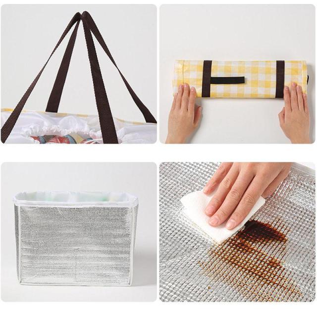 内側には全面にアルミシートを使用し、保温・保冷効果アリ。