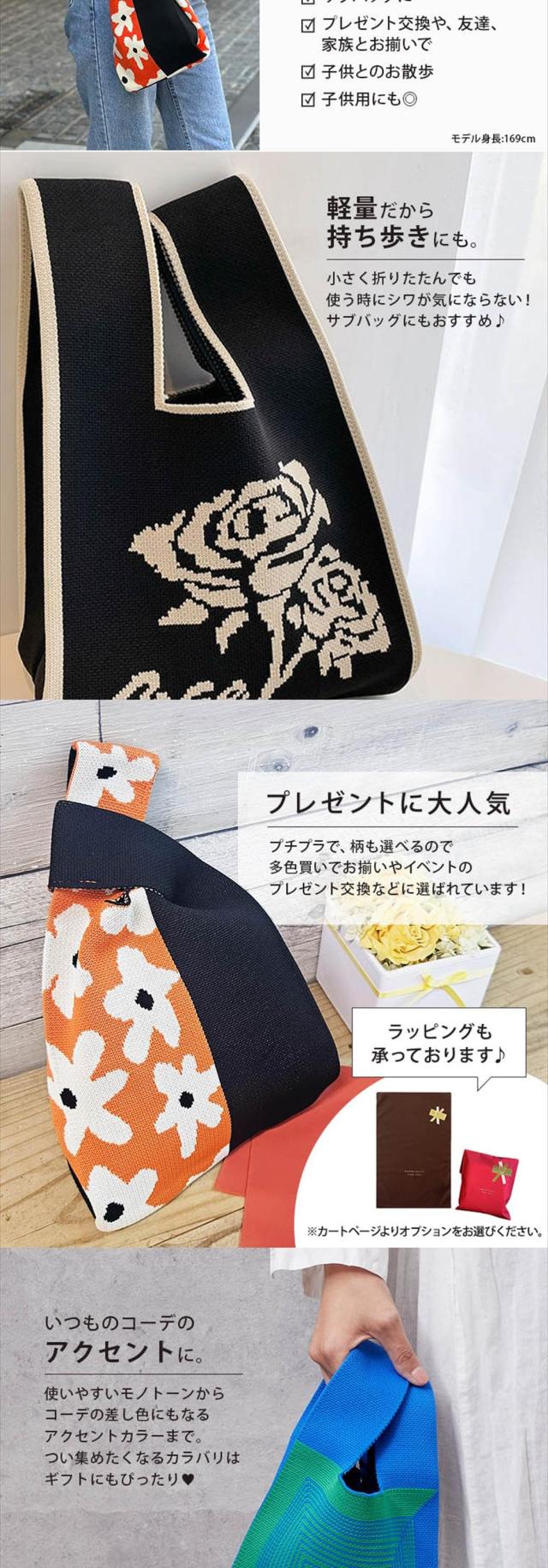 ニットバッグ ニット ミニ マルシェバッグ ミニトート フラワー ミニバッグ レディース 小さめ ハンドバッグ 軽い 軽量 折りたたみ サブバッグ おしゃれ プレゼント 1000円ポッキリ ショルダー ストラップ ギフト 春 ホワイトデー 新作