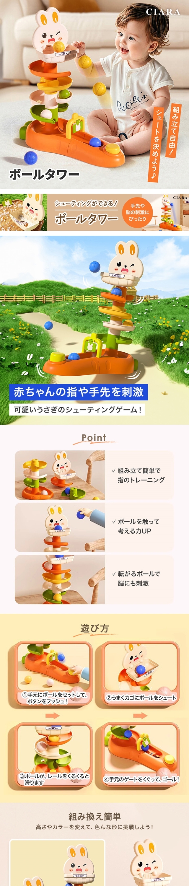 送料無料 ゲーム ができる うさぎのついた ボールタワー