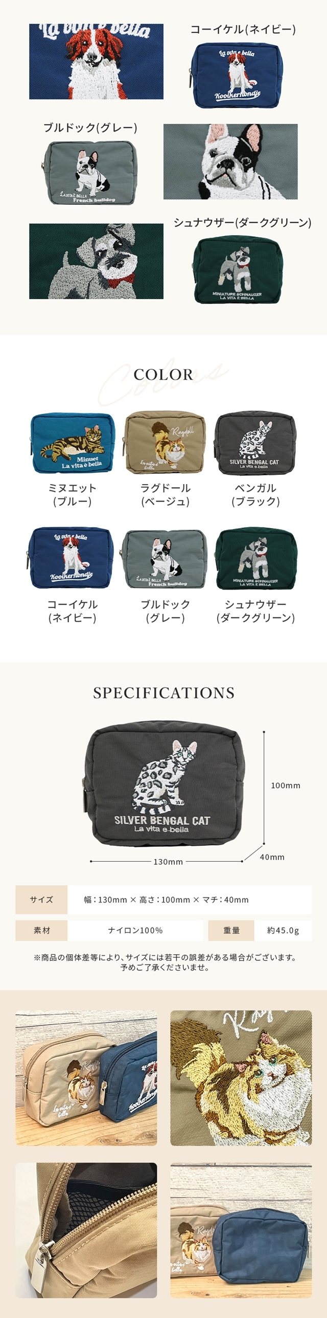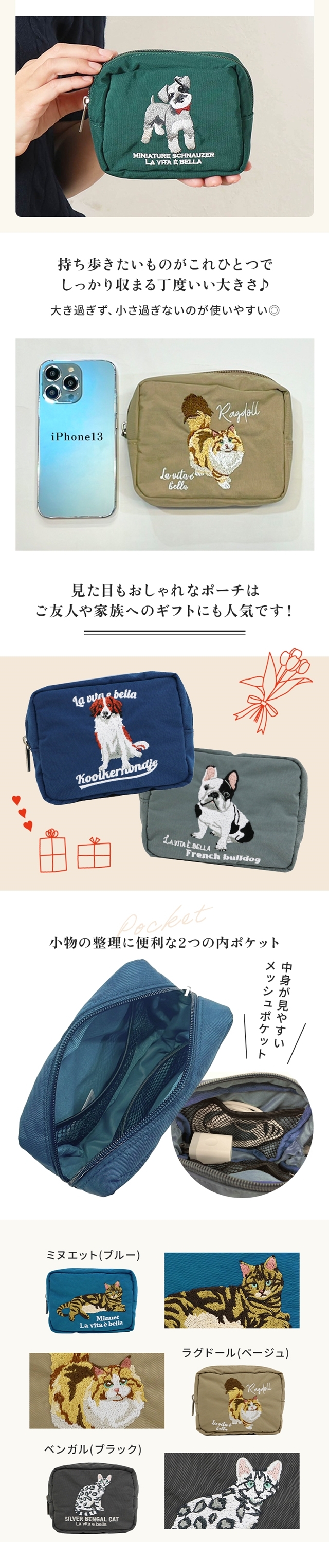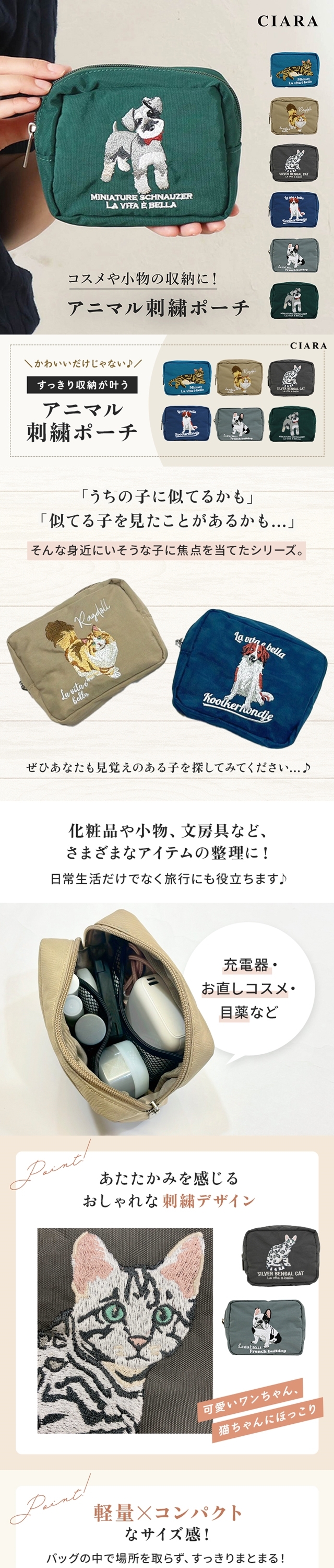 ポーチ 化粧ポーチ 大容量 かわいい ブランド ノベルティ化粧ポーチ 小物入れ 大きめ コスメポーチ おしゃれ 猫 犬 コンパクト 持ち歩き 可愛い レディース ネコ ねこ アニマル 雑貨 スクエア メイクポーチ センバドー 刺繍 ガジェット 旅行 ギフト 冬 バレンタイン