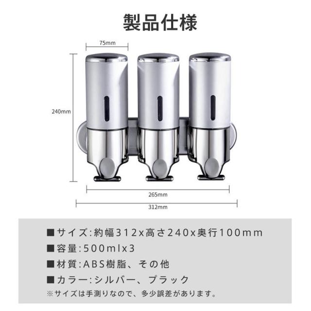 検索キーワード:シャンプーディスペンサー 壁掛け 3連 下から出る 大容量 ボディソープ ハンドソープ 詰め替えボトル 500ml×3 お風呂 浴室 浮かせる収納 おしゃれ 家庭用 業務用 ギフト 贈り物 母の日 父の日 バレンタインデー クリスマス 敬老の日 勤労感謝の日 おすすめ 人気ランキング 人気商品 雑貨 お返し 誕生日 シャンプー コンディショナー リンス 下からでる