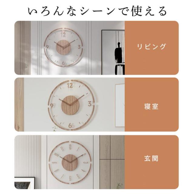 壁掛け時計 掛け時計 木製 薄型 おしゃれ 北欧 静音 木目調 知育時計 軽量 音がしない ドーム型 オフィス 静穏 連続秒針 ウッド 自宅 寝室