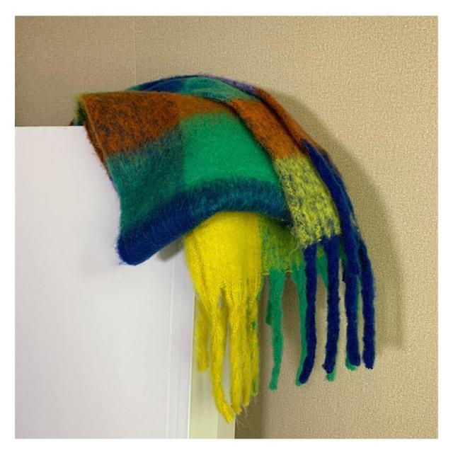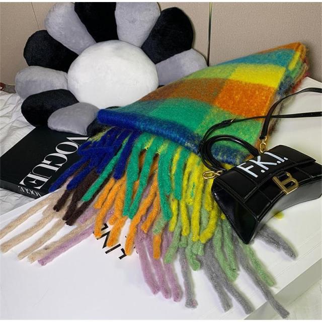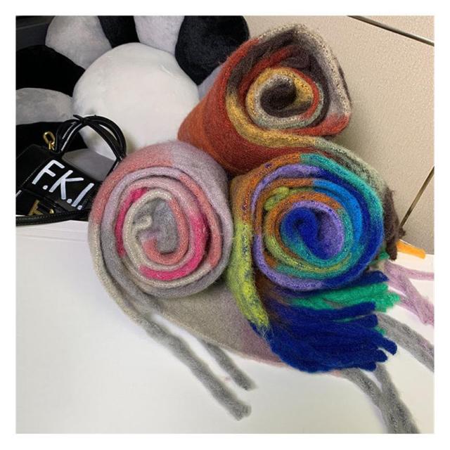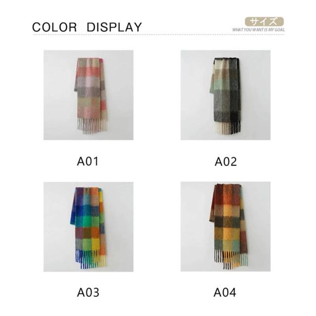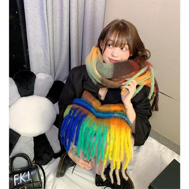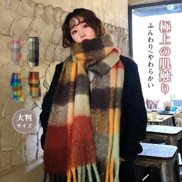 マフラー ストール 虹 大判 レディース フリンジ カシミヤタッチ リバーシブル 即納 おしゃれ 防寒 ネックウォーマー 秋冬 小物 暖か