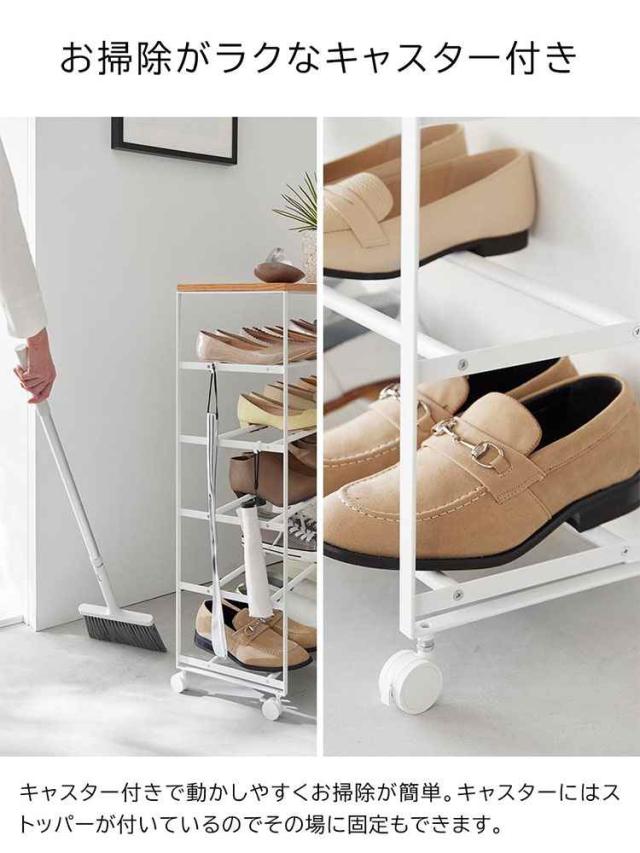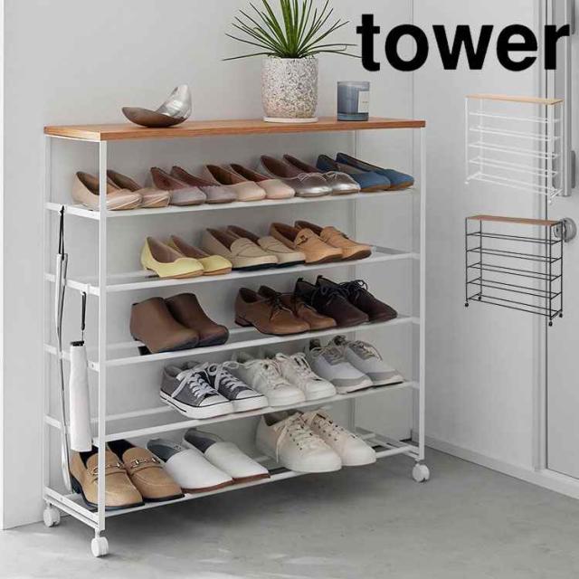 天板付きシューズラック タワー 5段 キャスター付 W90 山崎実業 tower スリム 下駄箱 靴箱 省 スペース 靴 収納 ラック 靴ラック シューズボックス シューズラック 棚 玄関収納 薄型 コンパクト おしゃれ シンプル 幅90cm 1465 1466 ホワイト ブラック 公式 スタイリッシュ