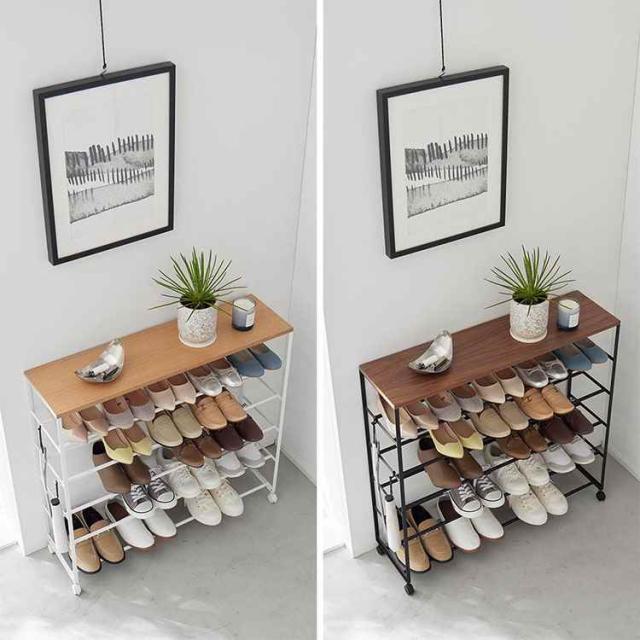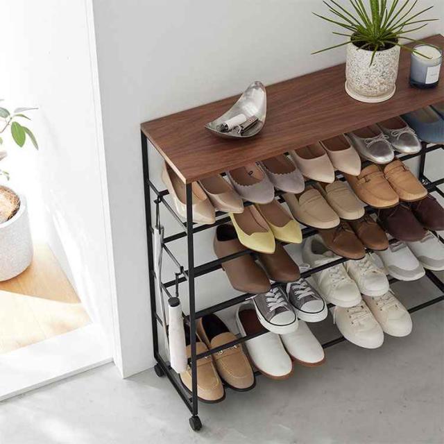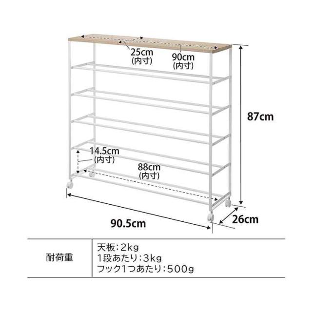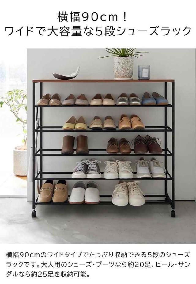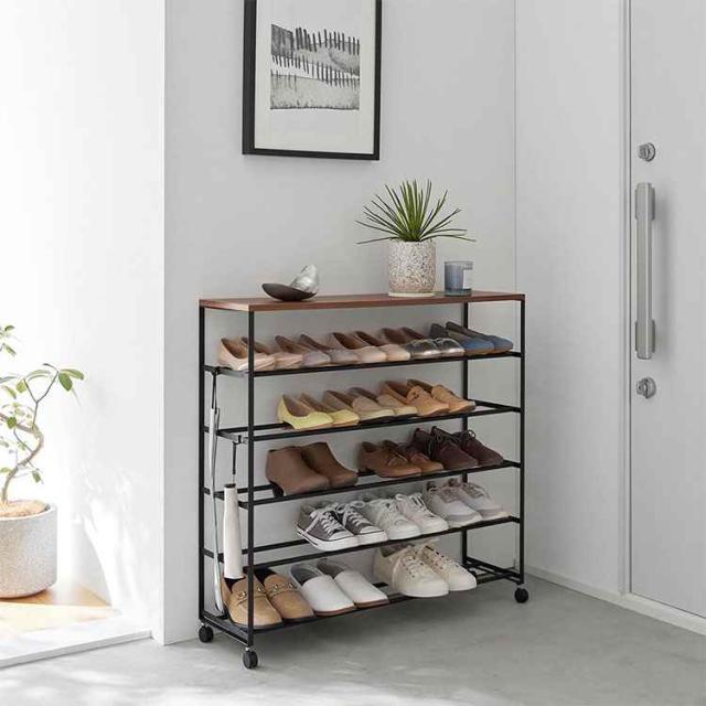 【天板付きシューズラック 5段 キャスター付 W90】
