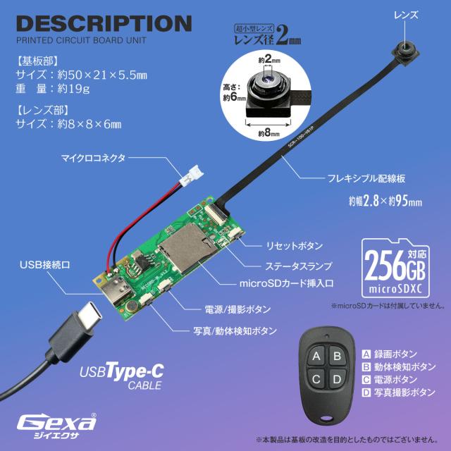 基板ユニット型カメラ UT-134 Gexa ジイエクサ スパイカメラ 小型カメラ OTGリーダー レンズキャップ付き