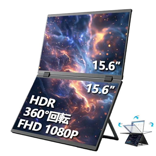 「2025最新品」「即納」モバイルモニター ディスプレイモニター ダブルスクリーン 360°回転 FHD 1920*1080 15.6 インチ hdmi IPS テレワーク モニター ダブル画面 在宅勤務 HDR/Tpye-C/mini-HDMI/ミラーリング/スマホ/PS4/PS5