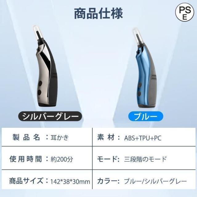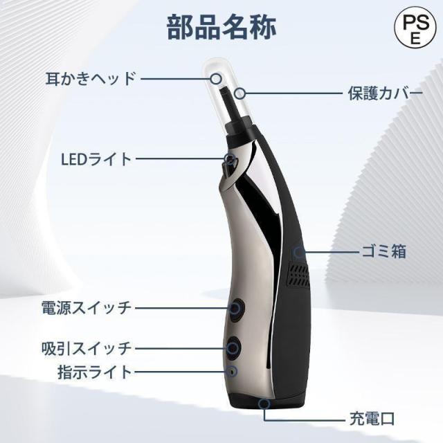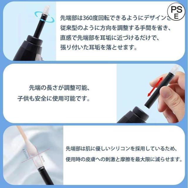電動 耳かき 吸引 自動 360°回転 耳かき 3段階モード LEDライト USB 耳掃除 耳道 耳垢 耳クリーナー 耳ケア 収納ケース付 母の日 父の日