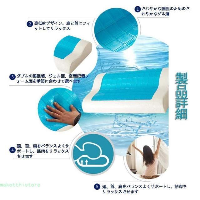 クールジェルとメモリーフォーム両面枕:メモリーフォームの独特の温かさの効果により、人間の頭の重量と生理的曲線に応じて枕の高さが調整されます。