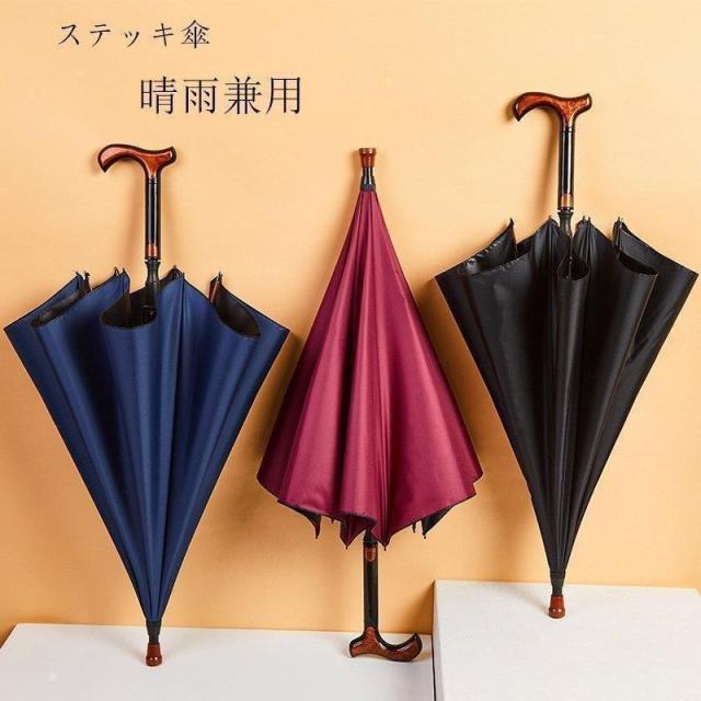 ステッキ傘仕込み杖杖傘長傘晴雨兼用日傘UVカット軽量大判60無地黒ブラックレッドプレゼント男女兼用敬老の日母の日ギフト new