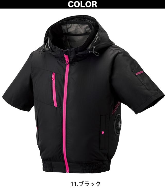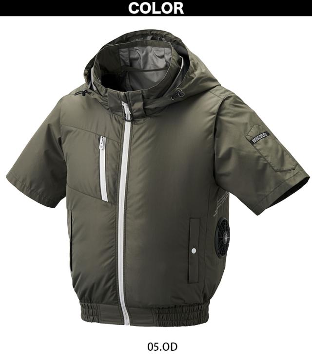 2025年新商品 サイドファン仕様 空調風神服チタンフード半袖 8845 単品 極涼 立ち襟 高衿 3D通気立体通気路 ポリエステル100% The tough アタックベース 電動ファン用ウェア 空調作業服 空調ウェア