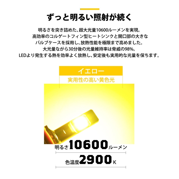 単 アウトレットSG LED MONSTER L10600lm LEDフォグランプキットバルブ イエロー 規格:H8/H11/H16・HB4・PSX26W