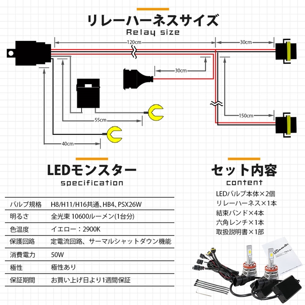 ピカキュウ,LED専門店ピカキュウ,LED MONSTER L10600 FOG LAMP KIT,LEDモンスターL10600フォグランプキット,2900K,爆光,良配光,カットライン,超爆光,明るい,汎用,キット,国産車,日本製の車,