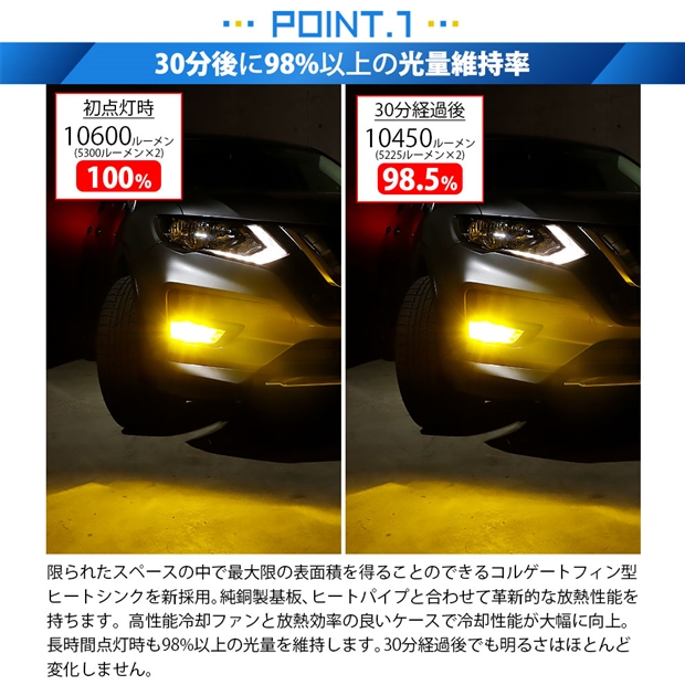 ※ルーメン値は、バルブ2個(車両一台分)の値を示しています。