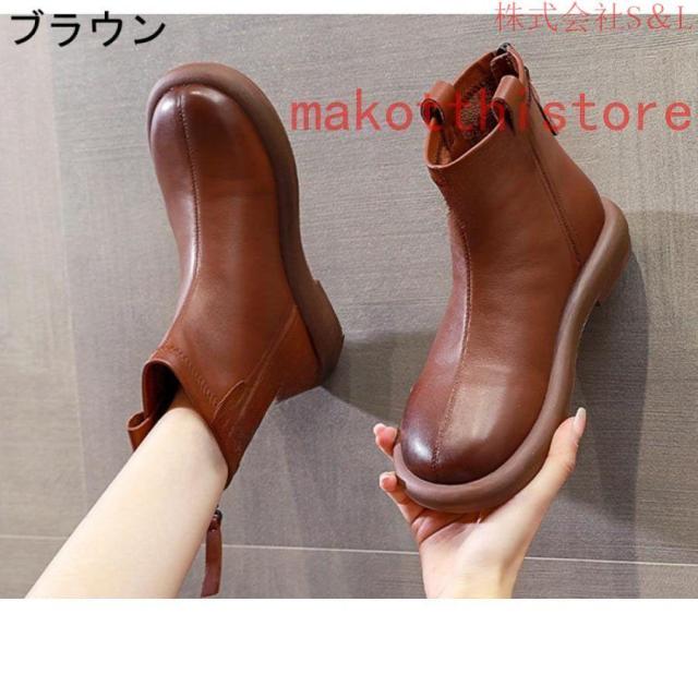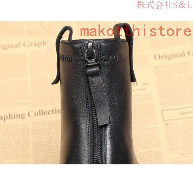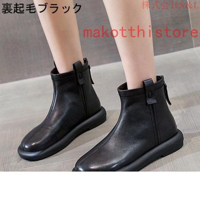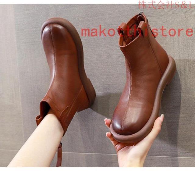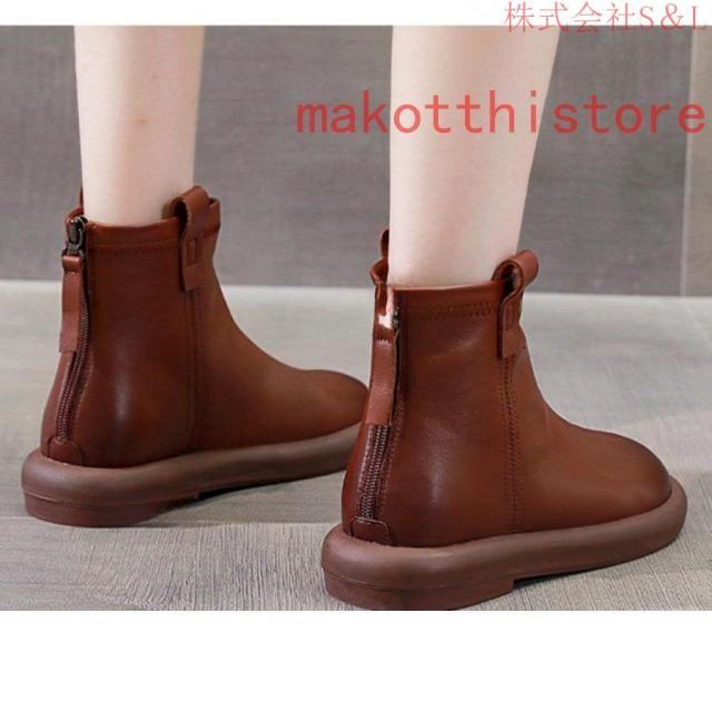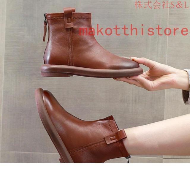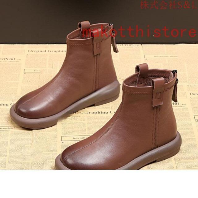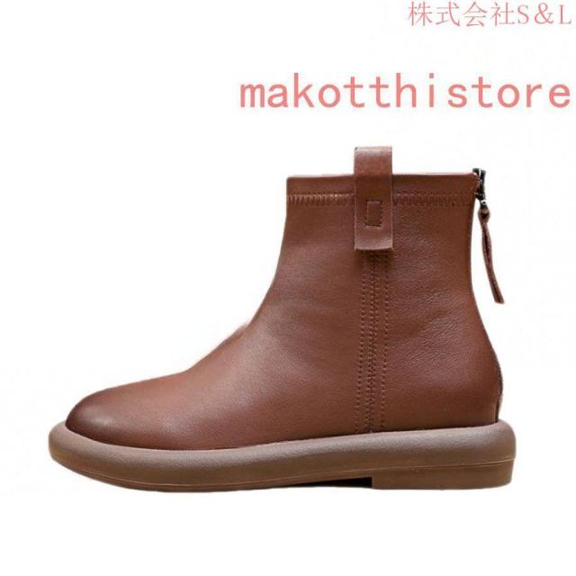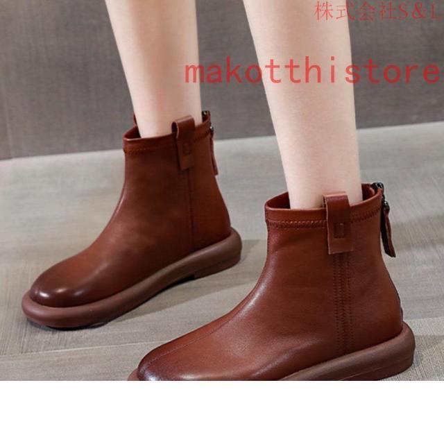 大きいサイズ レディース ショートブーツ 本革 柔らかい フラット ぺたんこ ヒール ファスナー付き おしゃれ カジュアル 黒 レザー 母の日プレゼント
