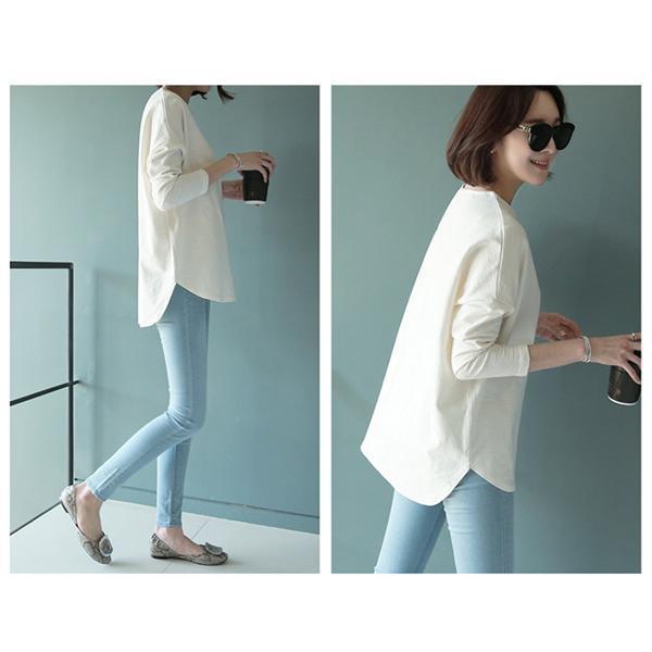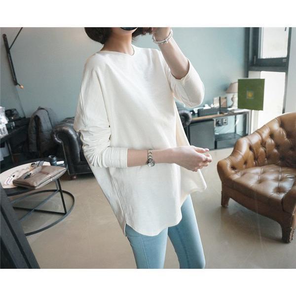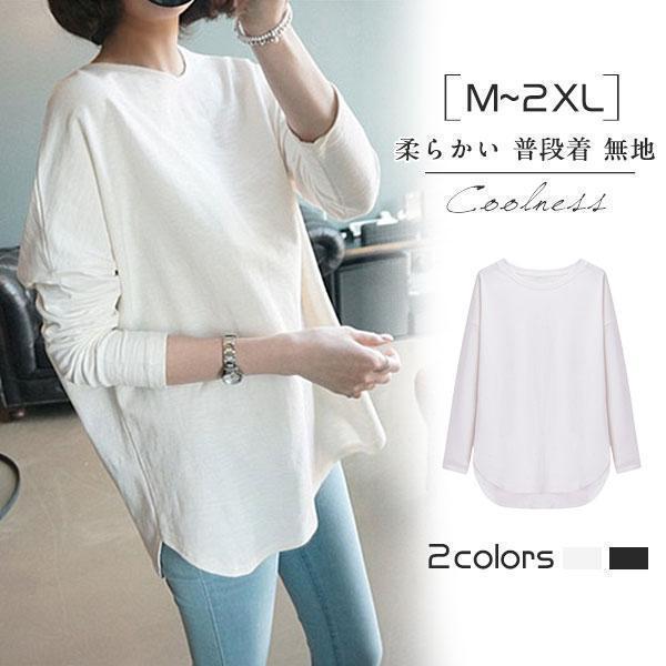 Tシャツ 長袖 レディース カットソー ロングT ゆったり 無地 春 夏 秋 ラウンドカット おしゃれ 普段着 柔らかい 高級感 快適 母の日