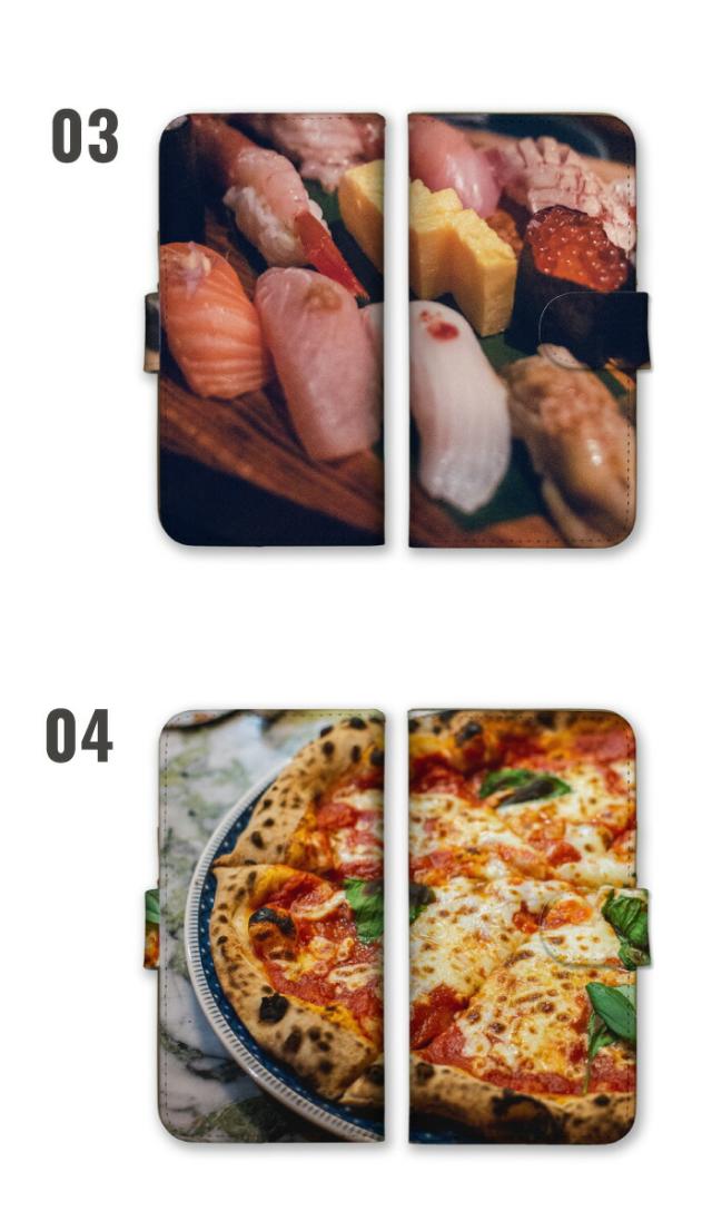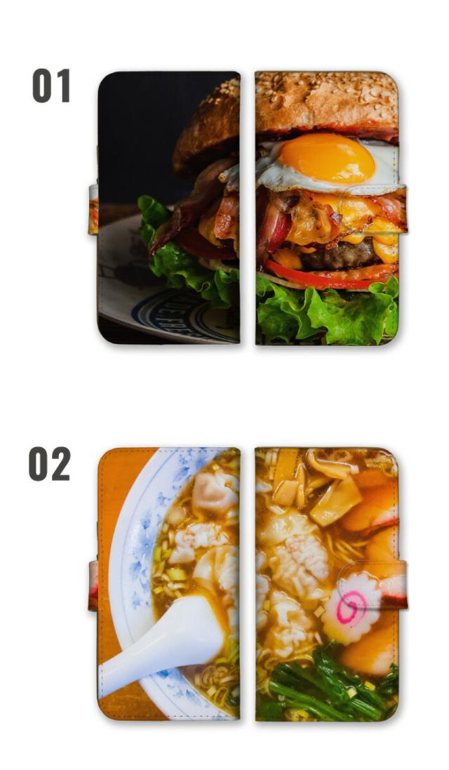 スマホケース スマホカバー 手帳型 全機種対応 Android iPhone ケース カバー 写真 美味しい 面白い ハンバーガー ラーメン 寿司 ピザ オムライス パン たこ焼き おでん タイ焼き フレンチトースト 送料無料