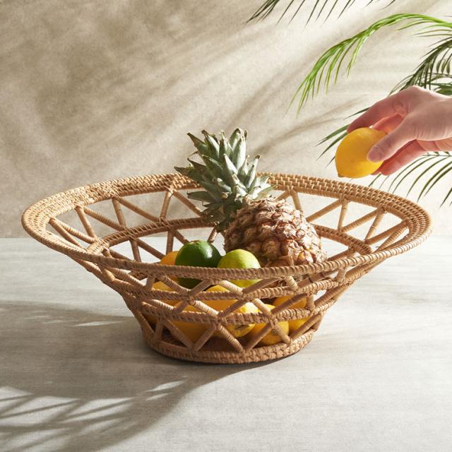 バスケット かご 円形 丸 ラタン 籐 フルーツ 果物 野菜 小物 お菓子 収納 入れ ストッカー リビング キッチン 店舗 レストラン カフェ 14137