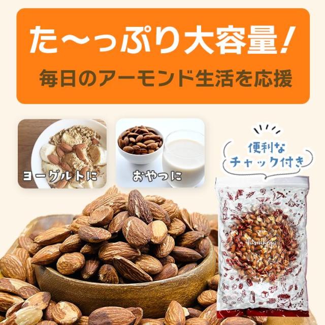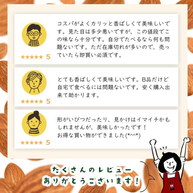 - アーモンド生活始めてますがスーパーで買うのはコスト的にちょっと。大容量で低コストの物待ってました。味も当然良しでした!