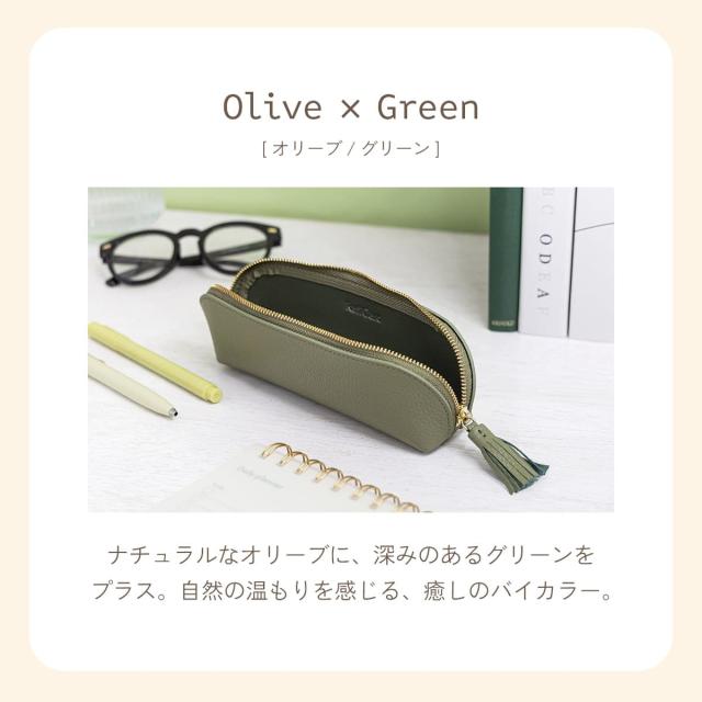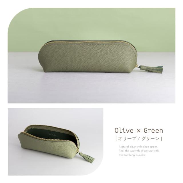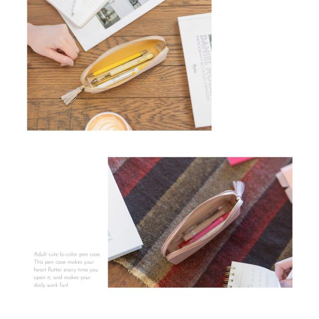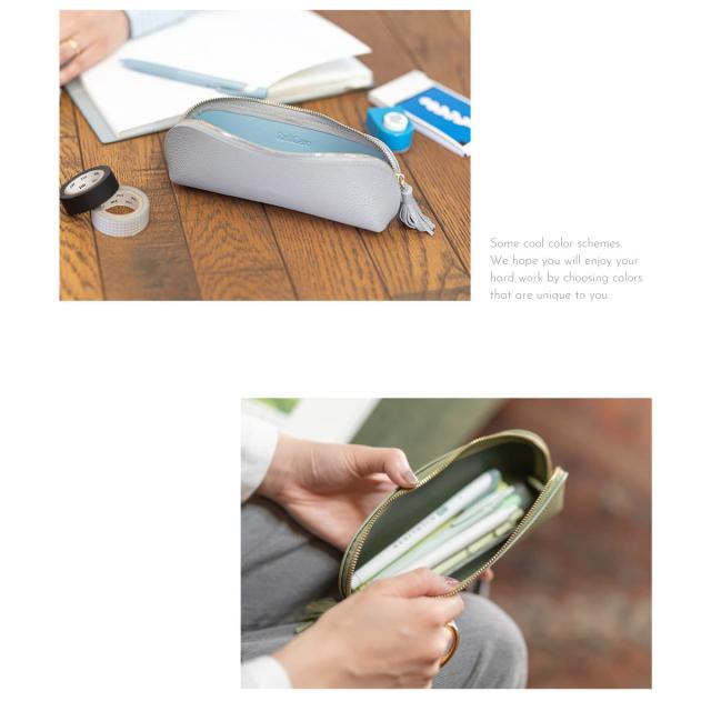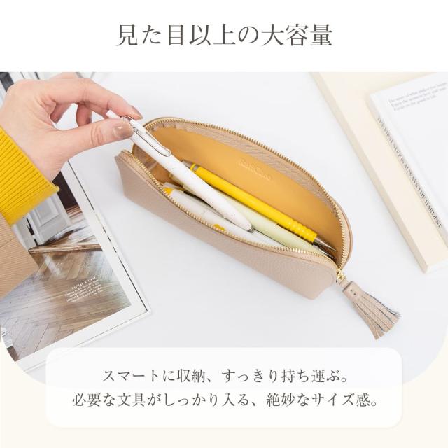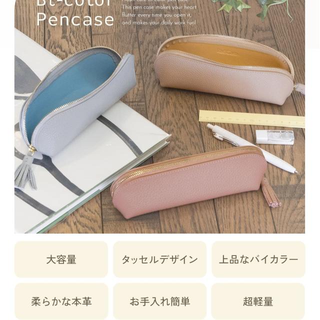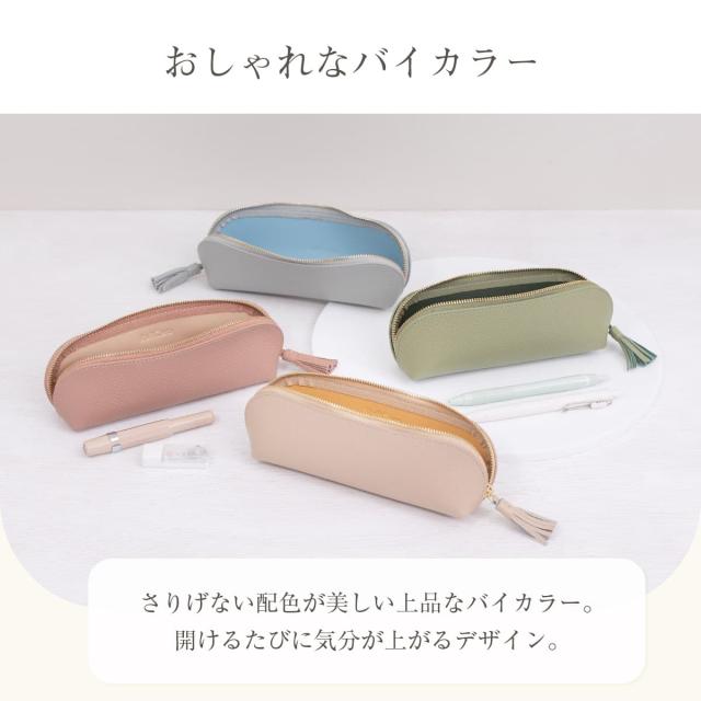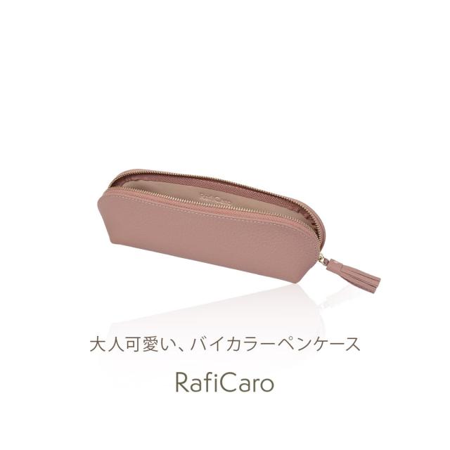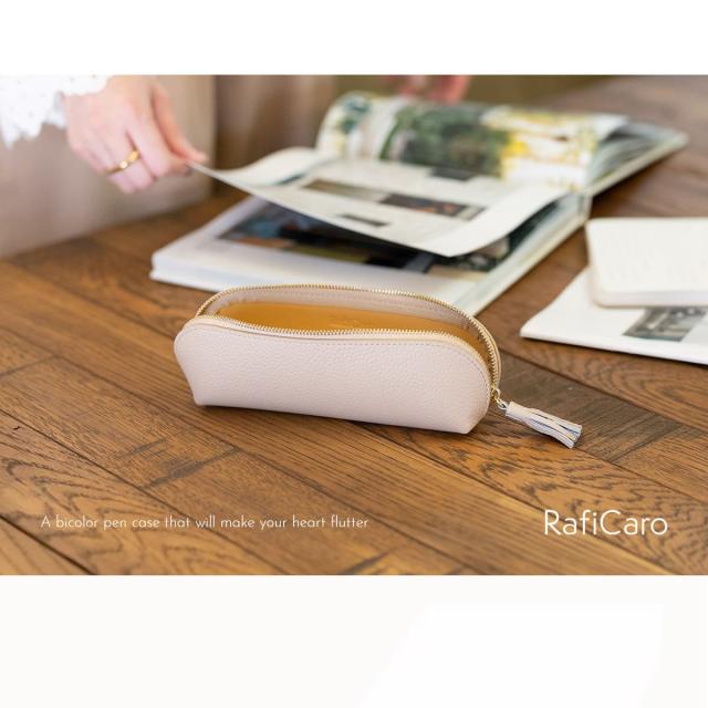 【限定500円OFFクーポン】【2,480円→1,980円】RafiCaro [新作]大人かわいい本革のペンケース 革 タッセル付き 大容量 コンパクト 丸型 筆箱 ペン入れ レディース 筆記用具 ペン 小物入れ レザー ポーチ かわいい シンプル おしゃれ バイカラー