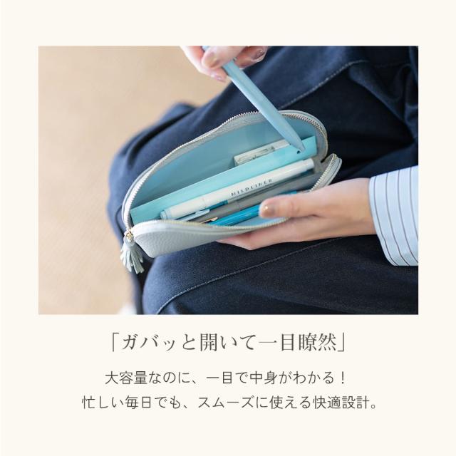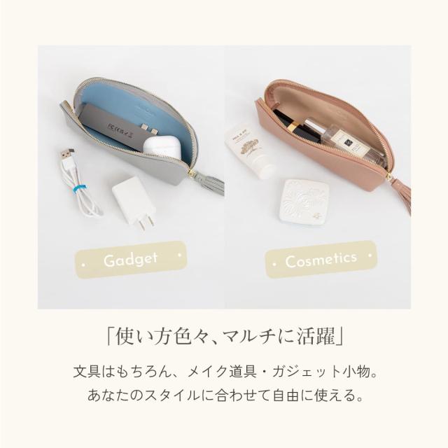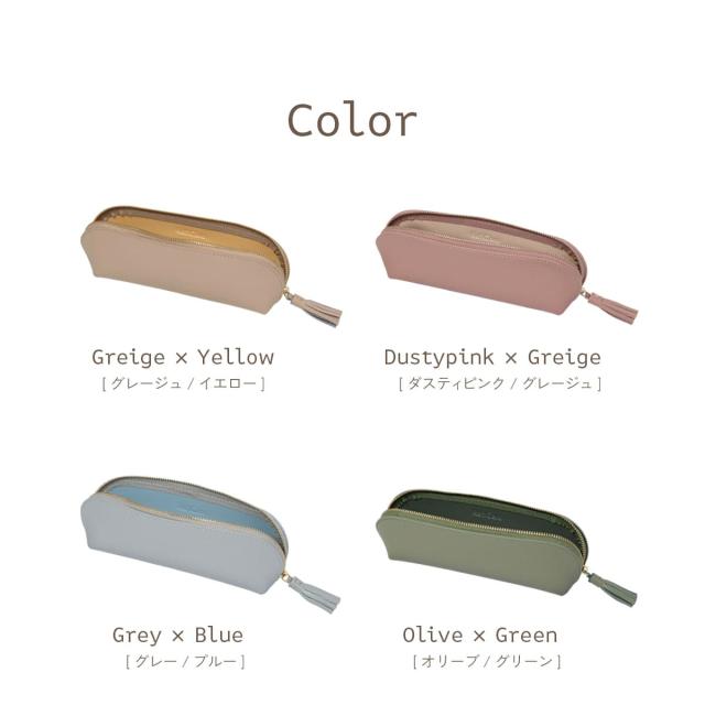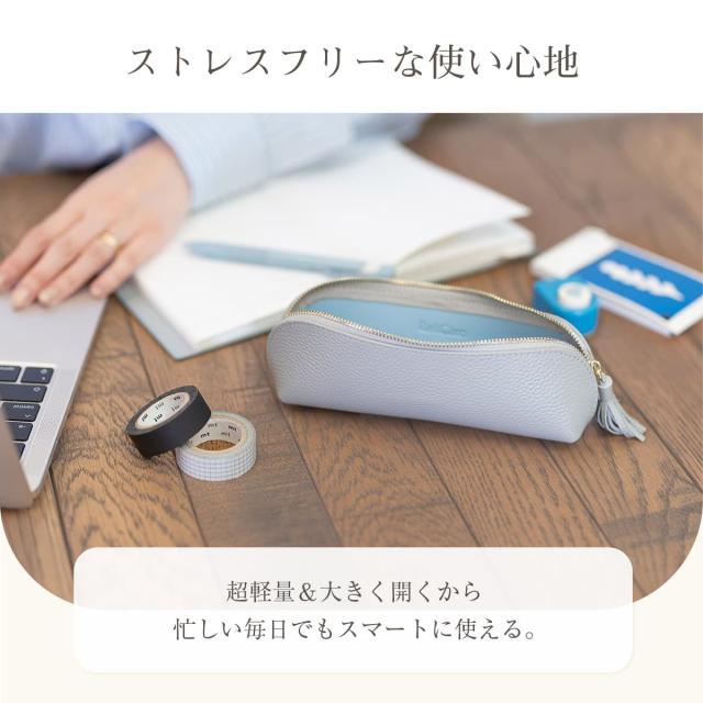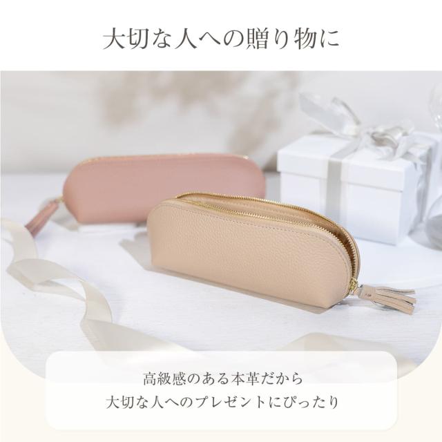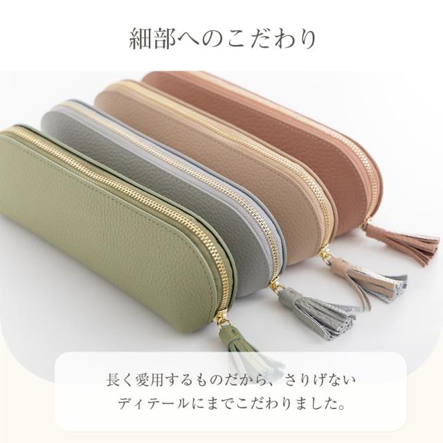 ふわっと柔らかな手触りのシュリンクレザーに、タッセルのアクセントが可愛いペンケースです。