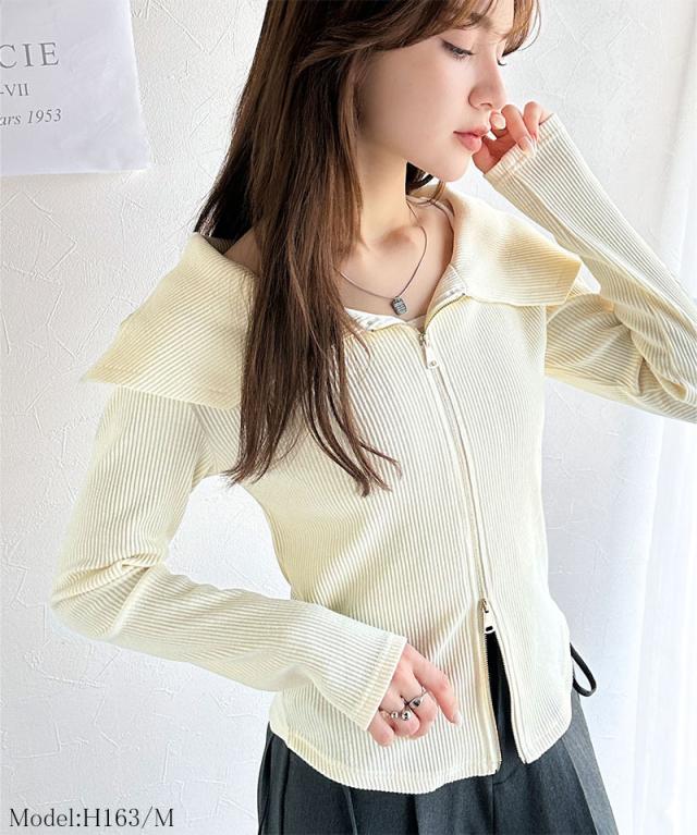 トレンド感満載のオフショルダブルジップカットソー。