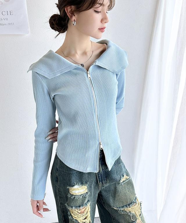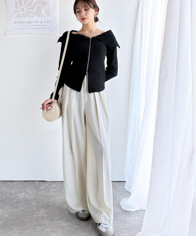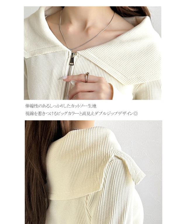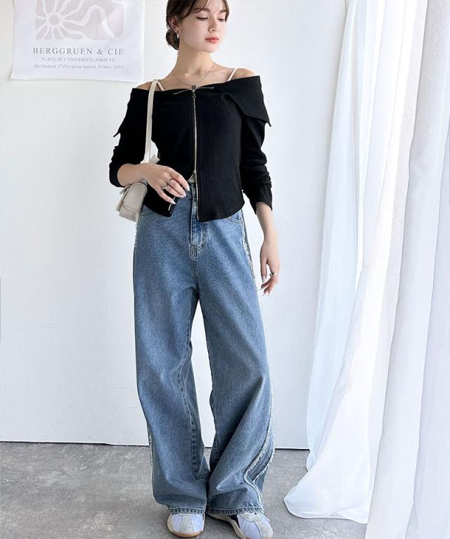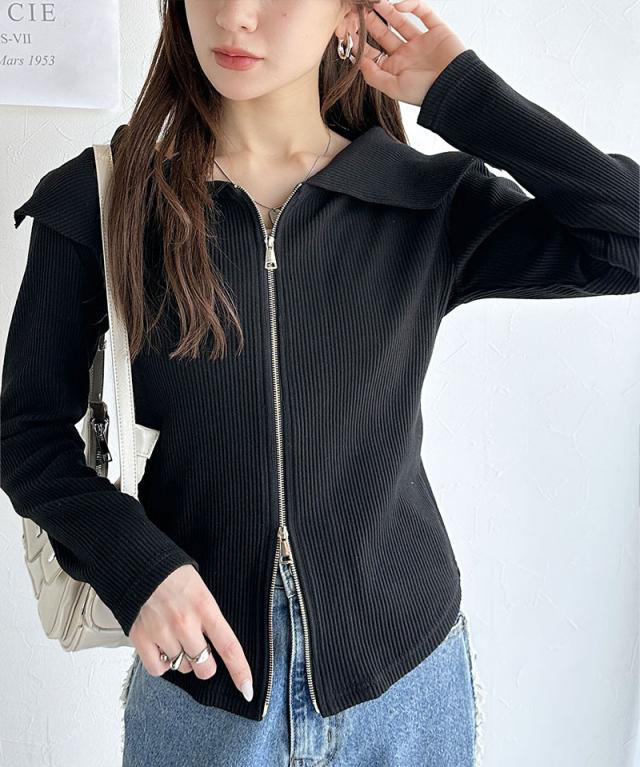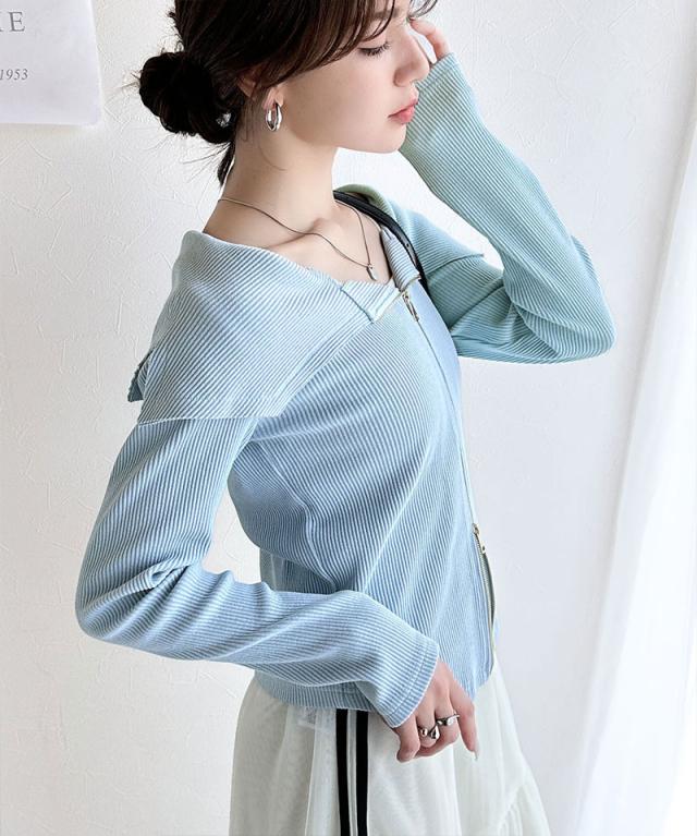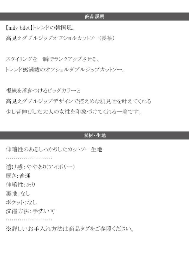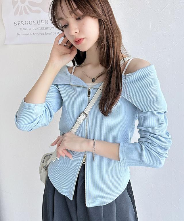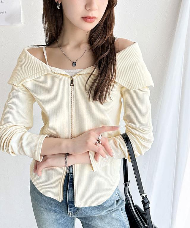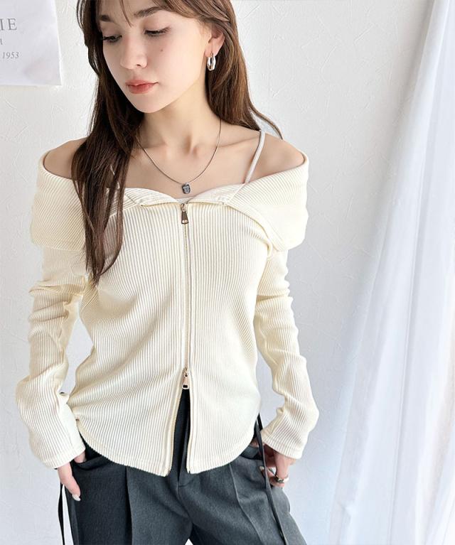 ★【mily bilet】トレンドの韓国風。高見えダブルジップオフショルカットソー(長袖)★